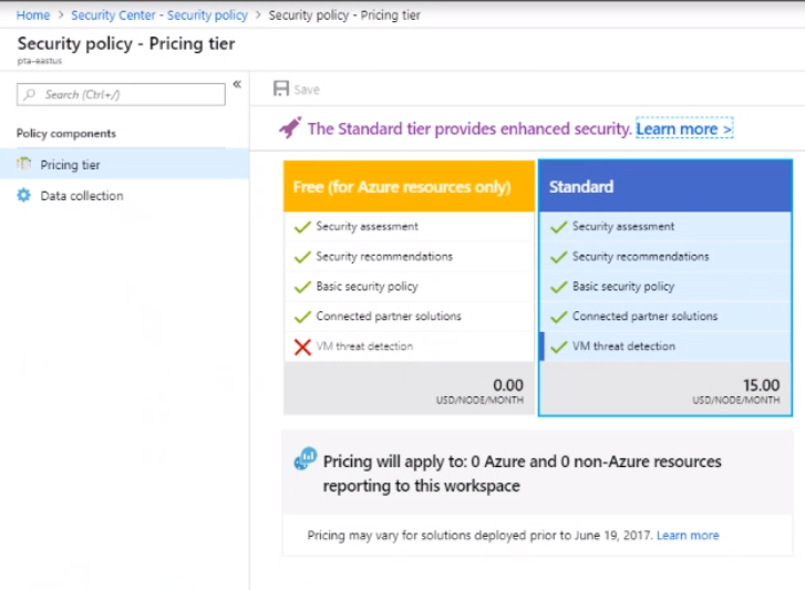 its quite likely, that you need to have Security Center Standard with proper event coverage enabled, to get the Node for security alerts under LA