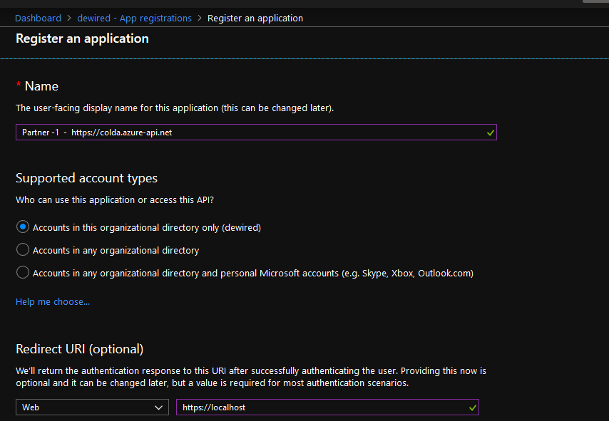 - We will use the FQDN of API management as displayName and AppID URL, in later calls we will use this as ‘Audience /Resource for the partner clients”