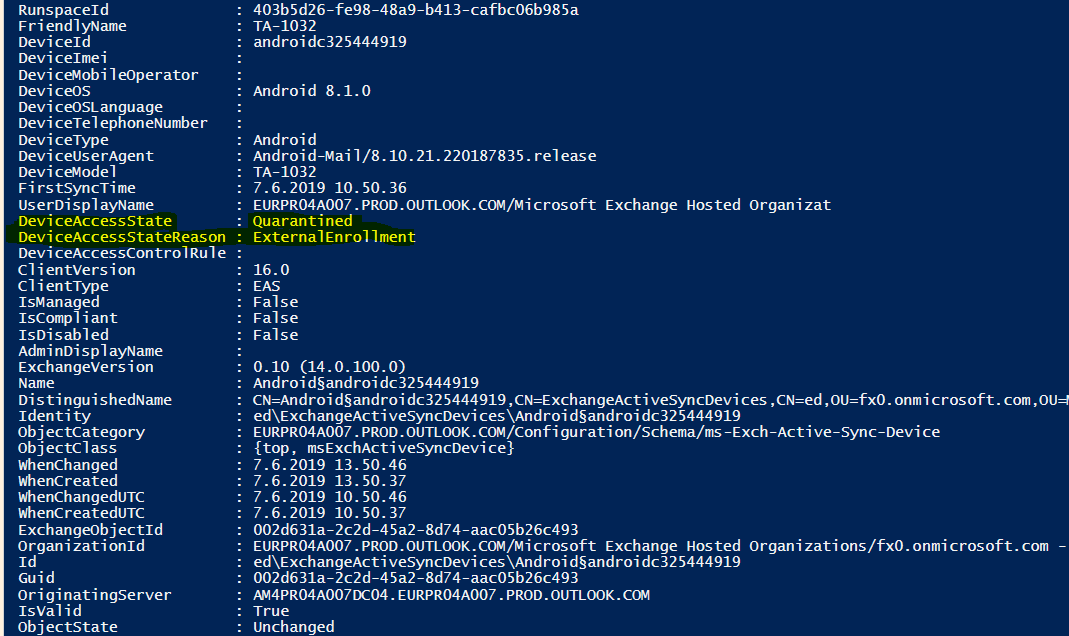 with Android devices even after successful enrollment and Conditional Access working as supposed (and with DeviceAccessState in EXO) – I suppose this is some bug for the enrollment not being able to display the status correctly (tested on Android 7xx and 8xx)