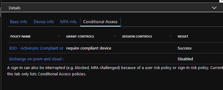 See, when the device isn’t supported by Intune (thus unable to ever get the Compliant status for ActiveSync access) it won’t get past Conditional Access.