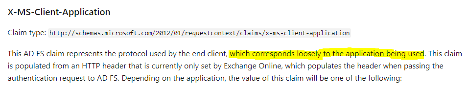 - X-MS-CLIENT-APPLICATION here isn’t reliable way to inspect ActiveSync header for a legitimate client at the IDP’s side, The only way to allow it without MFA is Conditional Access