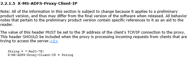 - X-MS-ADFS-Proxy-Client-IP seems to be based on the actual client IP with WAP, and should be more reliable, than the client writable header X-MS-FORWARDED-CLIENT-IP, which is advised to be used in many scenarios.
