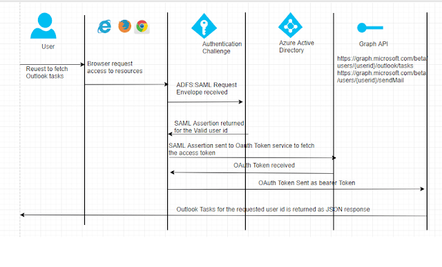SAML assertion can extracted from the IDP, if the IDP is thinking it’s ActiveSync client. Once the token is received in response, it is then converted to OAuth2 Access Token with “saml1_1-bearer” OAuth2 Grant. This can be done by using many of the existing public clients.