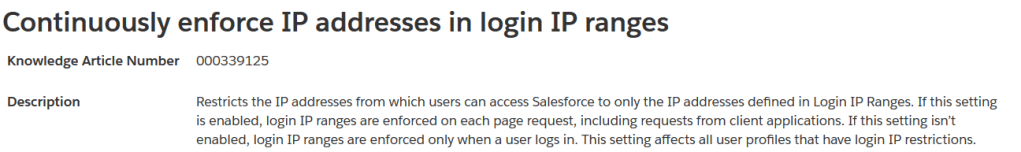 - This setting applies based on the profile IP restriction settings, not globally unless all your profiles have IP login restrictions in place