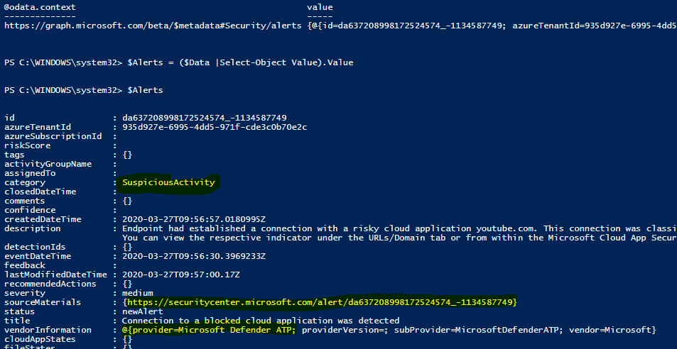Managing alerts in Microsoft ecosystem is the next natural topic which I will address in the coming posts. Stay safe!
