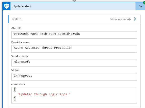 There are multiple ways to build the Logic App query and below is just an example. In my environment, I have many alerts in ISG and for that reason in the first run, I’m pulling all of them with a safe top=100 parameter from the ISG.