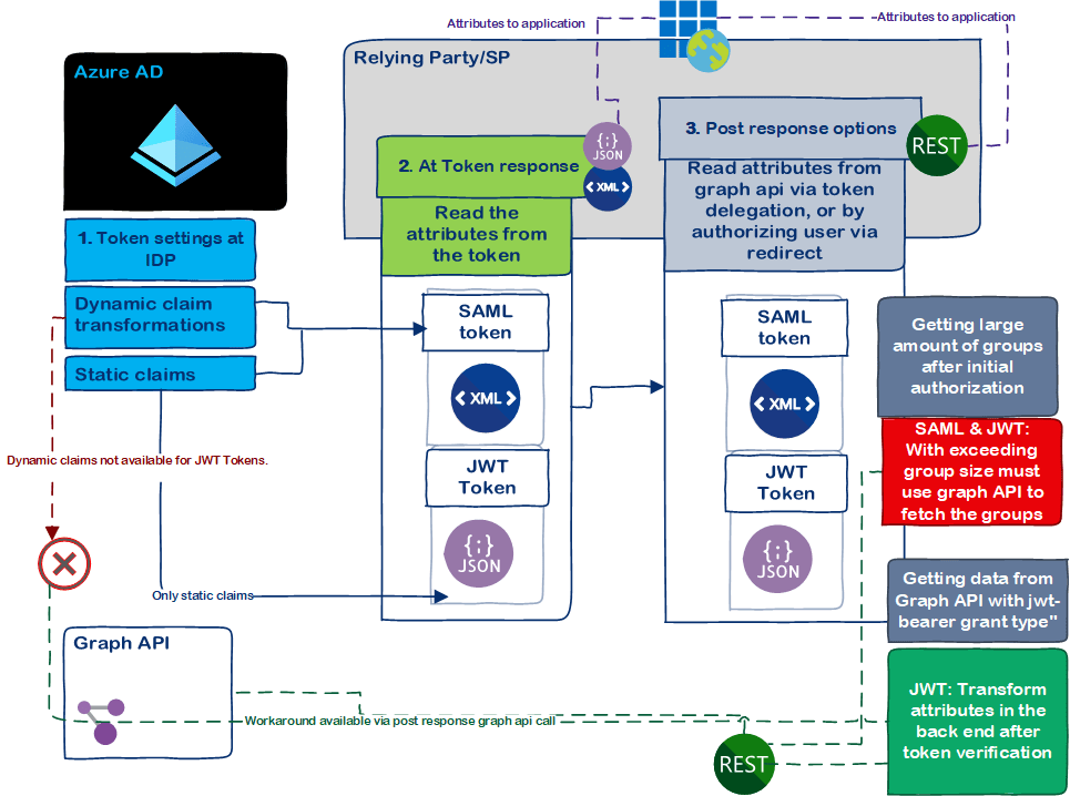 - Application needs combine information from Azure AD API’s beyond of that which is held in user attributes and groups