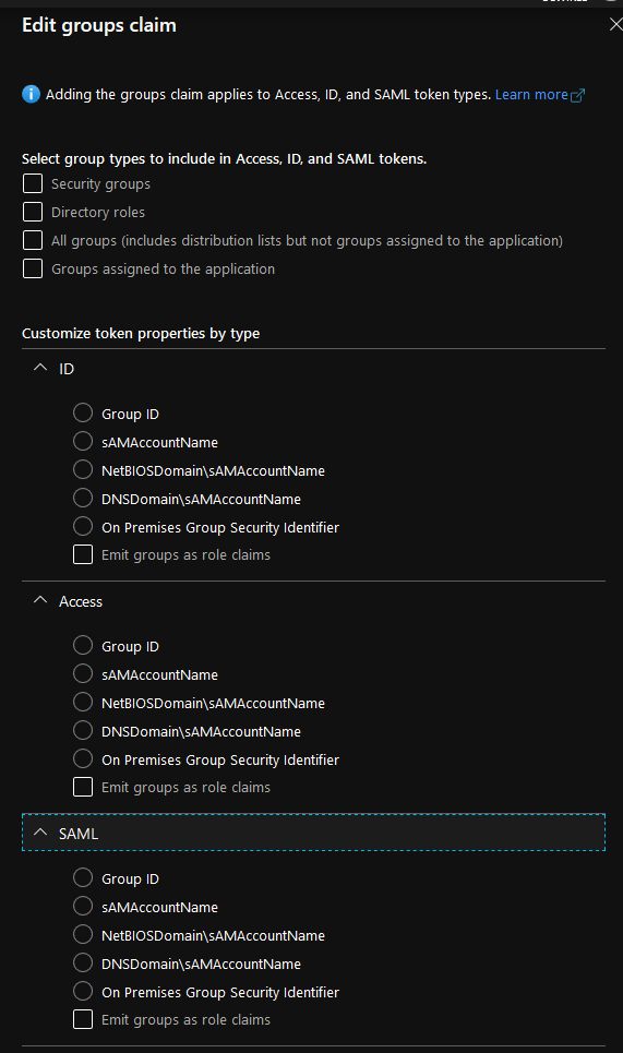 Many enterprise applications rely on group /role information to be passed on assertions for authorization, and further role decisions. Last three to five years these applications have been moving to the cloud, or at least seeing parts of their authorization middle-wares upgraded to support SAML, or OAuth2, or both. Judging by how rich the group claim options are in Azure AD I’d say Microsoft is investing heavily into making configuration options cover all imaginable scenarios