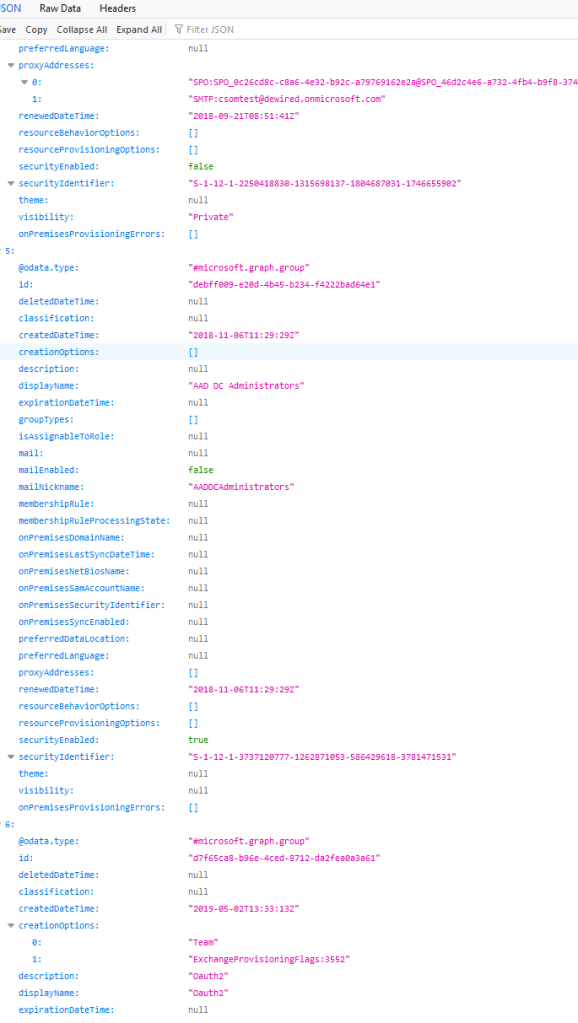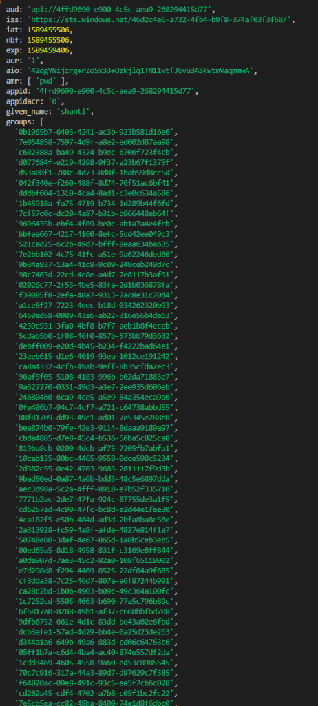 - In this approach you need to add additional permissions for the application if you want to get the group names besides group id’s.