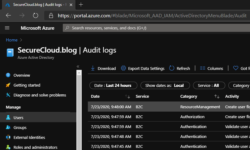 Extra: Monitoring administrative changes to Azure AD B2C