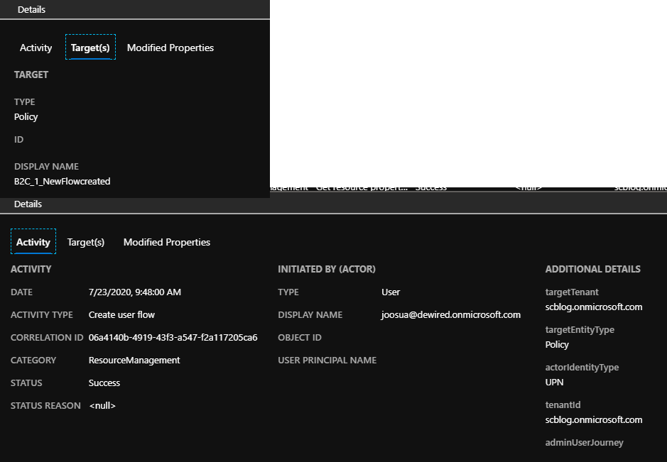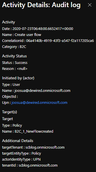 - You will see similar event the B2C side audit logs