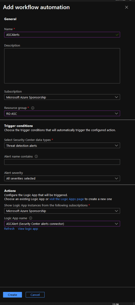 We create alert in security center now to get automatically alerts, instead of triggering them, as we did earlier, we configure them to be triggered on alert events