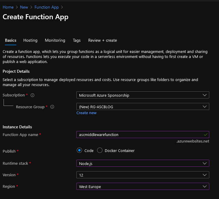 We create Azure Function which will parse and enhance contents destined for the Teams Webhook