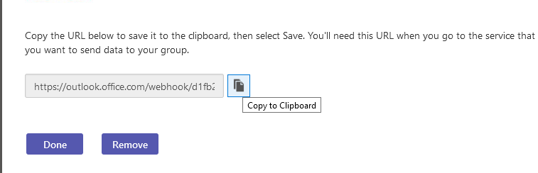 - upload image if you want to change the default image on the alert, and click ’Done’ after copying the webhook url