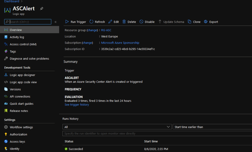Before we create the alert automation, we will trigger the logic apps manually with alert we created in previous step