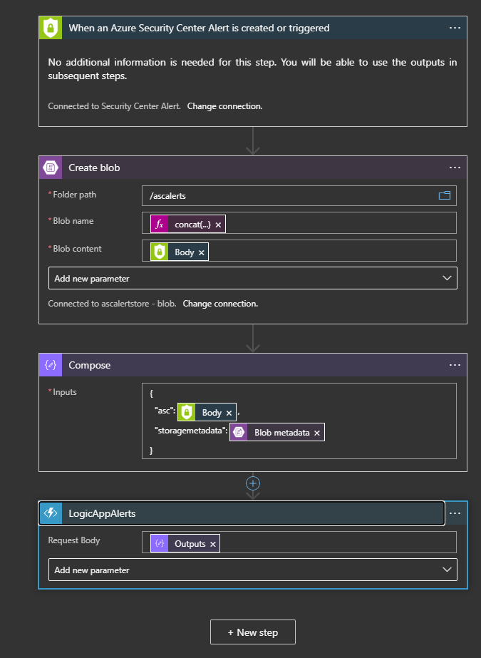 We create logic app which will act as the automation point of Azure Security Center alert, this is the part completes the main logic of this PoC