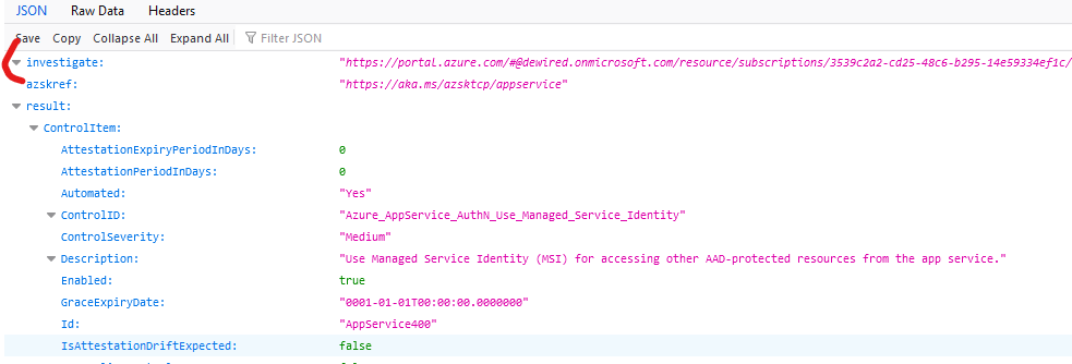 To do this, I created an API, which Ingests some files provided by AZSK toolkit scan run results. API will simply turn the URL path to params which it uses to lookup the controlID and resource.
