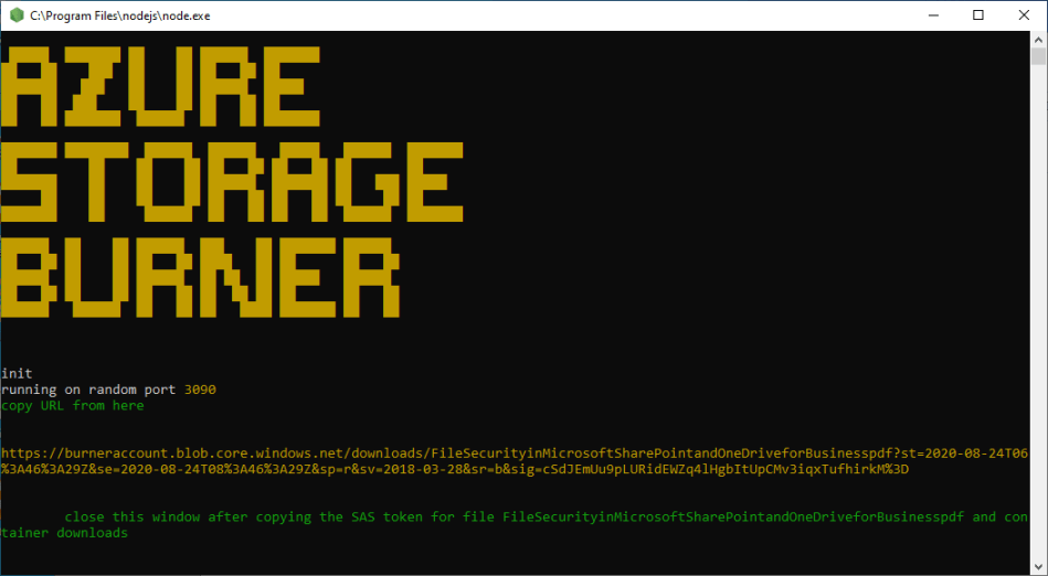 My POC idea was to test creating an ad-hoc ”burner” storage-account in Azure, and generate SAS token embedded file download links from explorer with the help of NodeJS. So instead of any established solution, I wanted to create light solution which is not running in the backround, and in terms of code is really lightweight