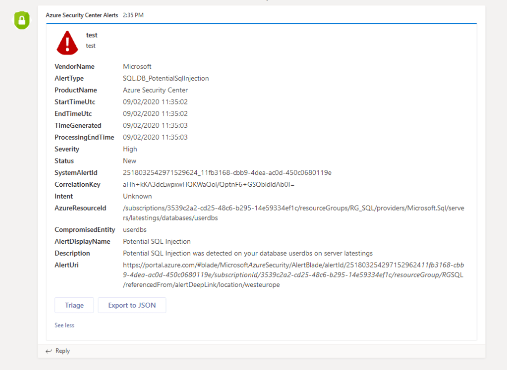 - Teams alert arrived upon the attempt of SQLI