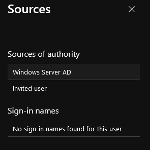 - After AAD Connect has run, you will see, that the users ’Sources of Authority’ is now ’Multiple’