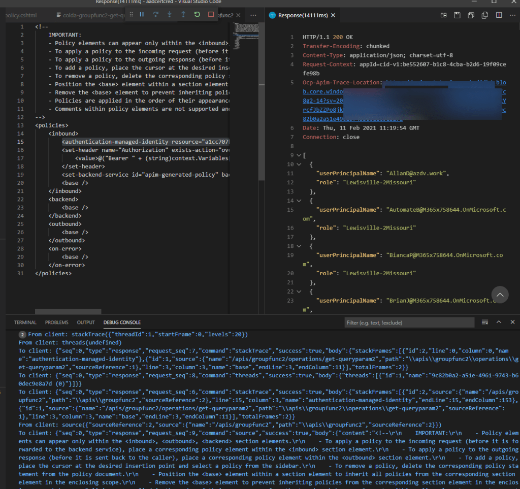 ✅ Confirm that function authorizes APIM with the Bearer Token