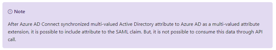 -> Multi-valued directory sync extension attributes are not surfaced in schema?