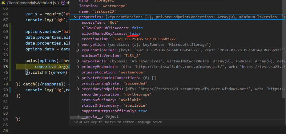2. SPN requesting resource change for setting allowSharedKeyAccess to false (was true)
