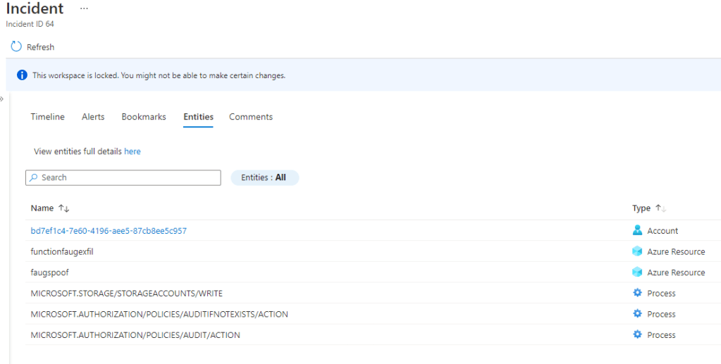 The alert uses following entities AzureResourceID, Account and process (process is only used to surface the action on ActivityLog – it’s not directly meant for this use case, but maps nicely the operations performed on Azure Resource Manager.