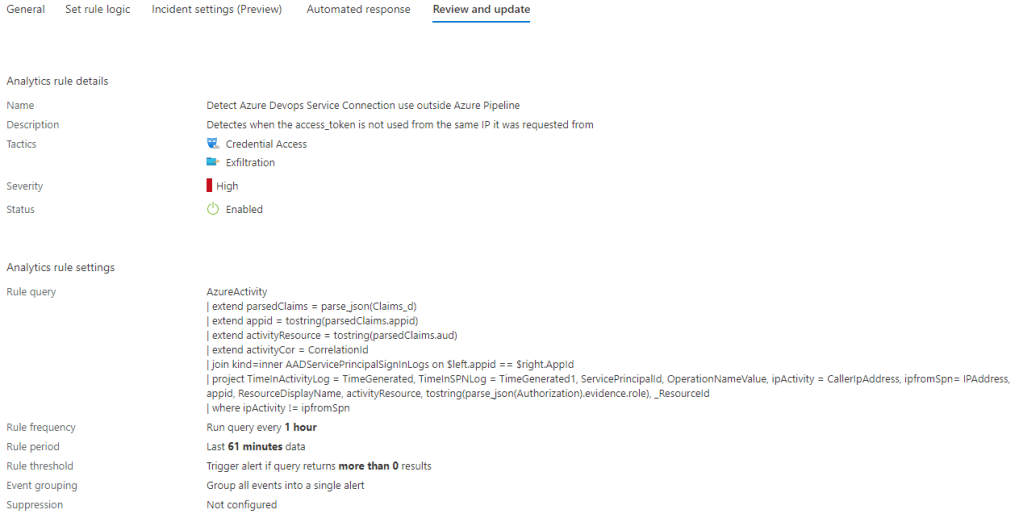 During the work on Azure AD – Attack and Defense Playbook (1) there was rather nice byproduct – a simple, yet effective query for detecting potential misuse of SPN (service connection) related to Azure DevOps pipelines.