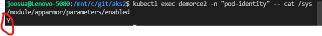 kubectl exec yourPod -n yourNameSpace -- cat /sys/module/apparmor/parameters/enabled