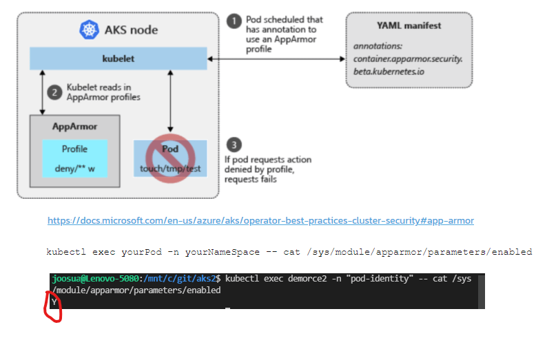 The policy reference for using appArmor profiles on AKS nodes is a bit of head scratcher. Multiple times I’ve come across the failed state in Azure Policy – even though Microsoft applies the default appArmor profile to each AKS node by default*