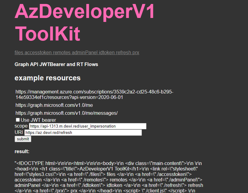 - 3rd party / custom Azure AD App – SPA web app (Client exchanges the Refresh Token)