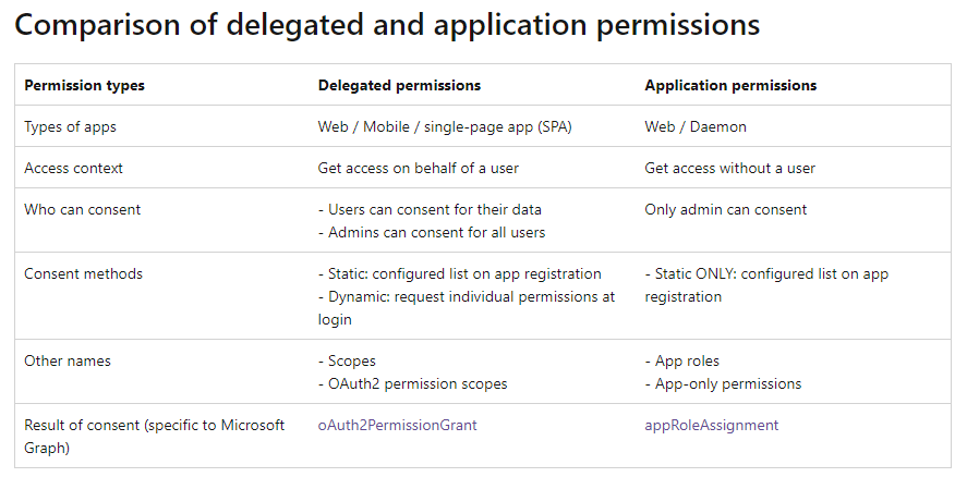 Since this post focuses on how these permissions are exposed and stored in Azure AD I recommend checking these excellent articles as starting point, if the reader should want some additional context for this posting.