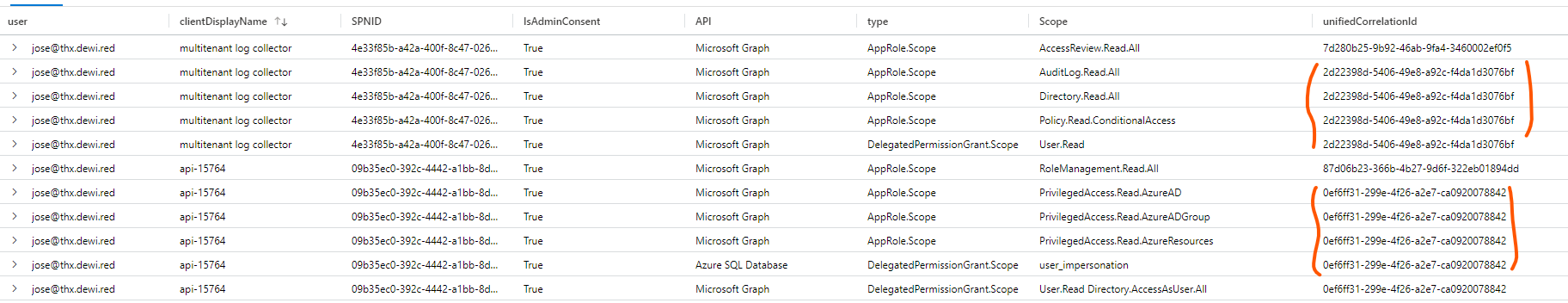 'Consent to application'then permission grant and consent operation will share the same correlationId