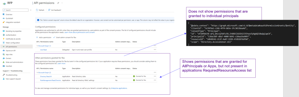 - Admins can grant permissions outside the consent experience which are not shown on the requiredResourceAccess of the original application object