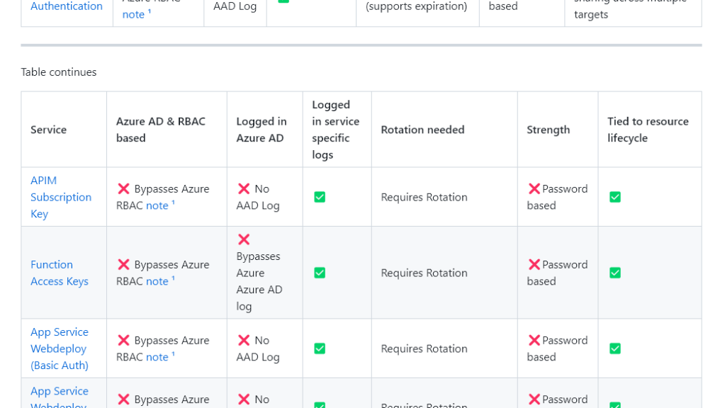 Notes Azure Service Authentication and Authorization table (visit the repo if you want to see full updates) Update list ✅Lue lisää